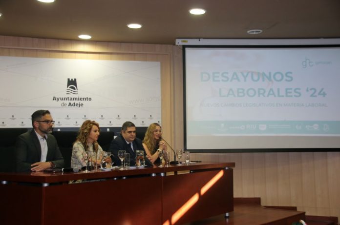 La décima edición de los Desayunos Laborales se celebró este miércoles 7 de febrero en el Centro de Desarrollo Turístico Costa Adeje (CDTCA). El evento, organizado por la asociación de Recursos Humanos GEHOCAN en colaboración con el Ayuntamiento de Adeje, tiene el objetivo de explicar los nuevos cambios legislativos en materia laboral de la mano de profesionales de Recursos Humanos y profesionales de la administración pública como la Dirección General de Trabajo, el Servicio Público de Empleo Estatal, la Tesorería General de la Seguridad Social y la Inspección de Trabajo.