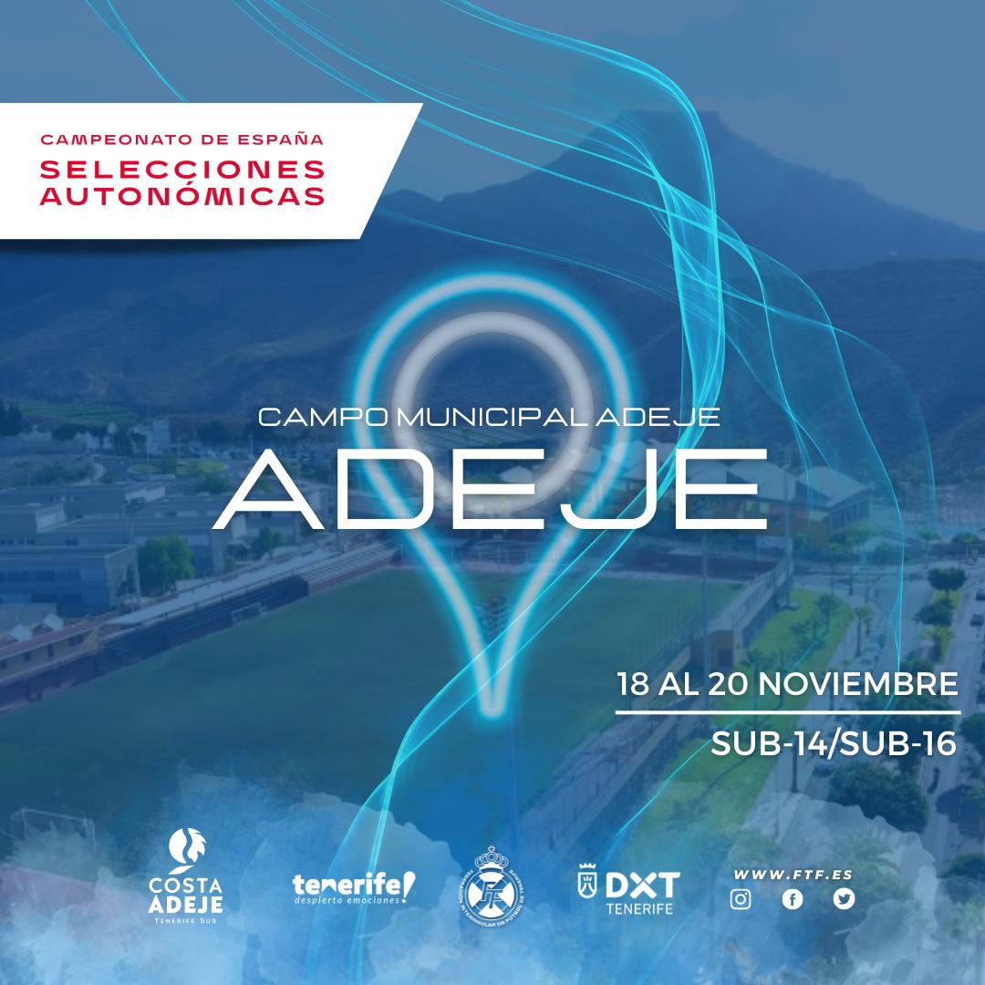 La Federación Interinsular de Fútbol de Tenerife (FIFT) ha elegido el Campo Municipal de Adeje para la celebración de estos campeonatos que contará con la participación de la Federación Canaria de Fútbol (FCF), Real Federación de Futbol de Madrid (RFFM) y Real Federación Galega de Fútbol (RFGF).