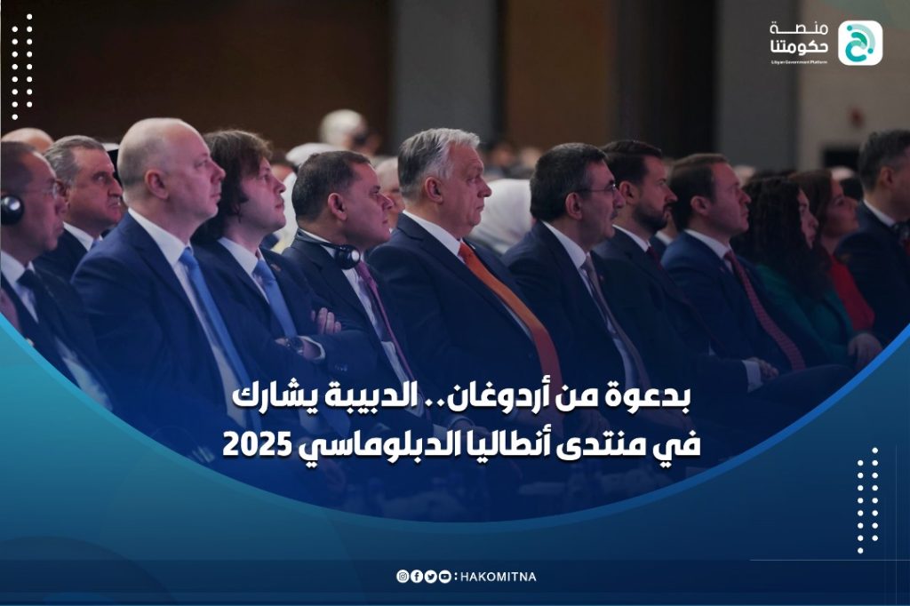 Libyan Prime Minister of the Government of National Unity, Abdulhamid Al-Dabiba, participated on Friday in the fourth session of the 2025 Antalya Diplomacy Forum, following an official invitation from Turkish President Recep Tayyip Erdogan. The event, which gathers leading global political figures, served as a platform for Libya to reaffirm its role in international discussions on security, cooperation, and development.