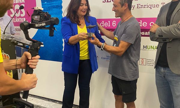 El fotógrafo submarino Enrique Talledo ha sido distinguido con el Premio Arona SOS Atlántico 2022. El galardón se dio a conocer, en la inauguración de la muestra Secretos del Océano, con veinticinco de las imágenes que ha captado en mares de todo el mundo, en el Centro Cultural de Los Cristianos, que forma parte de la novena edición del Festival [www.sosatlanticofestival.com]. El jurado ha premiado a Talledo por “su visión personal de los fondos marinos de todo el planeta, y, de forma especial, por la divulgación de las maravillas de los micromundos fantásticos que habita en mares y océanos”. La Primera Teniente de Alcalde y concejala de Promoción Económica, Raquel García García, entregó el galardón a Enrique Talledo. También estuvo presente el concejal de Turismo y Cultura, José Alberto Delgado.