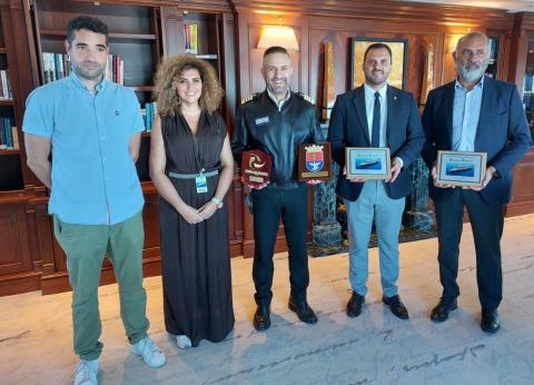 El alcalde de Arrecife, Yonathan de León, y la concejal de Turismo y Comercio, Eli Merino, junto a los representantes de la Autoridad Portuaria de Las Palmas, realizaron una visita a este crucero e hicieron entrega de una metopa en recuerdo de la primera escala en la capital conejera.