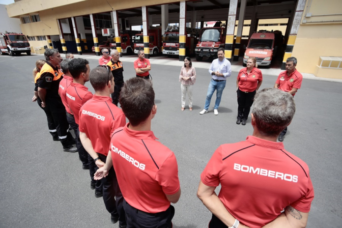 Las Palmas de Gran Canaria, lunes 21 de agosto de 2023.- Un total de 13 componentes del Servicio de Extinción de incendios y Salvamento (SEIS – Bomberos) y de Protección Civil de Las Palmas de Gran Canaria han partido esta tarde hacia Tenerife para colaborar con la extinción del incendio de Tenerife, que se inició el pasado 15 de agosto y que afecta ya a más de 13.000 hectáreas de monte. Antes de su salida, los miembros de ambos cuerpos municipales recibieron la visita de la alcaldesa de Las Palmas de Gran Canaria, Carolina Darias, y el concejal de Seguridad y Emergencias, Josué Íñiguez, quienes agradecieron su predisposición por acudir a la extinción del fuego forestal.