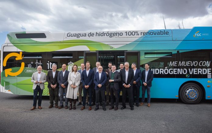 El vehículo de ‘cero emisiones’ utiliza el hidrógeno producido en la planta de biorrefinería del ITC en Pozo Izquierdo -Biogreenfinery-, subvencionada por el Gobierno de Canarias a través del Fondo React-EU con una asignación cercana a los 6 millones de euros, destinada al ensayo de nuevos biocombustibles para el transporte colectivo