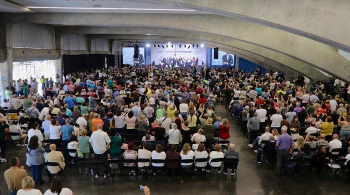 En un Recinto Ferial de Sata Cruz de Tenerife totalmente lleno y superando todas las expectativas iniciales, los nacionalistas tinerfeños alentaron a “recuperar la ilusión de una isla que se está quedando atrás y que ha perdido su posición de privilegio”. Por eso, insistieron en que “necesitamos una Tenerife fuerte, nacionalista y con ganas de avanzar”.