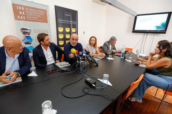 Los presidentes de las patronales turísticas canarias Federación de Empresarios de Hostelería y Turismo de Las Palmas (FEHT Las Palmas), José María Mañaricúa; Asociación Hotelera y Extrahotelera de Tenerife, La Palma, La Gomera y El Hierro (Ashotel), Jorge Marichal; Asociación de Empresarios Turísticos de Fuerteventura (Asofuer), Antonio Hormiga; y Federación Turística de Lanzarote (FTL), Susana Pérez, han subrayado en rueda de prensa en la capital grancanaria la necesidad de impulsar las medidas contempladas en la Ley de Renovación y Modernización Turística de 2013, que en el pasado mes de febrero cumplió una década desde su entrada en vigor. En particular, las patronales turísticas abogan por un nuevo impulso en la aprobación de herramientas como los Planes de Modernización, Mejora e Incremento de la Competitividad (PMM), que, por su agilidad en la tramitación y resultados positivos en la cualificación de los destinos turísticos en los que han sido aplicados, han demostrado ser útiles para la actividad económica y el empleo, al mismo tiempo que han contribuido a una mejora de la calidad y la sostenibilidad ambiental.