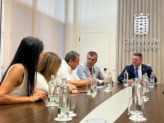 Domínguez se reunió en la sede del Cabildo de Lanzarote con su homólogo Jacobo Medina y aprovechó también su visita a Arrecife para realizar encuentros con el alcalde de la capital lanzaroteña, Yonathan de León, y con el presidente de la Cámara de Comercio de Lanzarote y La Graciosa, José Valle.