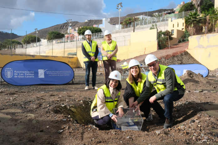 La alcaldesa de la ciudad, Carolina Darias, junto a la concejala de Deportes y presidenta del Instituto Municipal para la Promoción de la Actividad Física y el Deporte (IMD), Carla Campoamor; el concejal de Desarrollo Urbano, Mauricio Roque; la concejala del Distrito Vegueta-Cono Sur-Tafira, Nina Santana; y el gerente del IMD, Eloy García, iniciaron este viernes, simbólicamente, la construcción de este espacio con el acto de colocación de la primera piedra.
