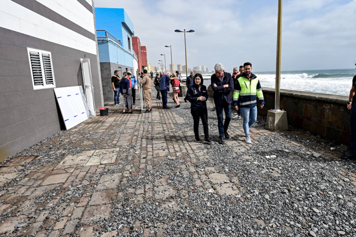 Darias, junto con el resto de ediles, ha realizado un recorrido por el barrio para conocer ‘in situ’ los efectos del fuerte oleaje e informar a los vecinos y vecinas de las medidas que se están tomando desde el Ayuntamiento.