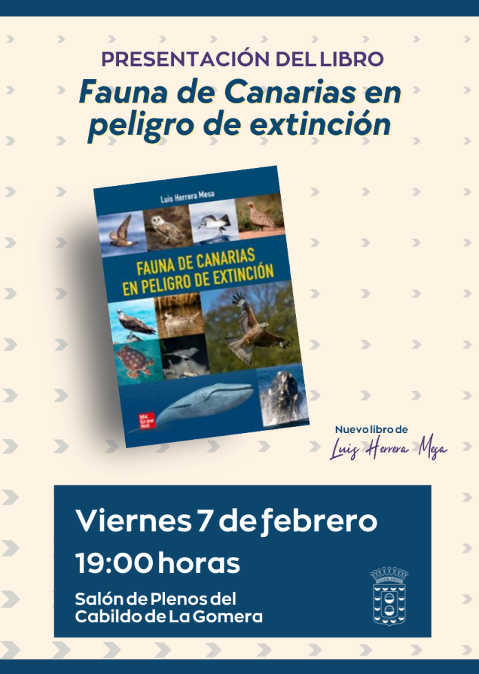 El Cabildo de La Gomera acoge este viernes, 7 de febrero, a las 19.00 horas, la presentación del libro ‘Fauna de Canarias en peligro de extinción’, una obra sobre la biodiversidad del archipiélago canario y las especies amenazadas que habitan en él.