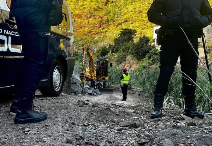 Tamaranae_activistas denuncia que en el día 3 de enero a primera hora de la mañana se personaron en la zona de El Caidero 8 agentes de la Policía Nacional y dos vigilantes de seguridad para custodiar el trabajo de las máquinas durante el ensanche de la carretera para la ejecución de las obras de la central hidroeléctrica de bombeo reversible Chira – Soria.