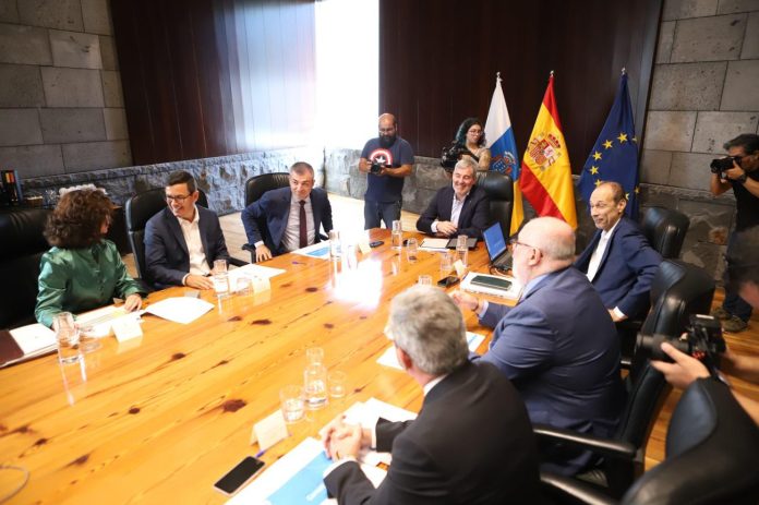 La segunda reunión del Consejo Asesor del Presidente que se celebra en lo que va de XI Legislatura ha contado con la participación de los representantes de las principales organizaciones empresariales y sindicales de Canarias. En representación de las confederaciones empresariales provinciales han asistido Pedro Ortega, Pedro Alfonso, José Cristóbal García y Eduardo Bezares, mientras que como portavoces de los planteamientos de los sindicatos UGT y Comisiones Obreras, Manuel Navarro y Francisco Bautista, e Inocencio González y Esther Martín, respectivamente. Además del presidente Fernando Clavijo y del vicepresidente Manuel Domínguez, también han participado en esta reunión de trabajo sobre Presupuestos del Consejo Asesor las consejeras de Hacienda, Matilde Asián; de Turismo y Empleo, Jéssica de León; y de Bienestar Social, Igualdad, Juventud, Infancia y Familias, Candelaria Delgado.