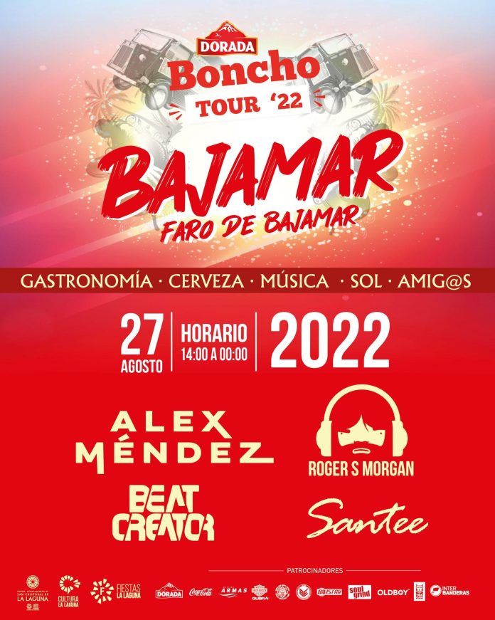 El Faro de Bajamar acoge hoy sábado 27, a partir de las 14:00 horas, la última edición del festival de gastronomía, cerveza y música del verano Boncho Tour 22. Esta iniciativa, que organiza Dorada y cuenta con el apoyo de las concejalías de Cultura y de Fiestas del Ayuntamiento de La Laguna, se extenderá hasta las 00:00 horas, ofreciendo a lo largo de diez horas una amplia programación. El evento contará en esta ocasión con una terraza con puestos en los que comercios y establecimientos de restauración de Bajamar podrán ofrecer productos de cercanía de la zona.
