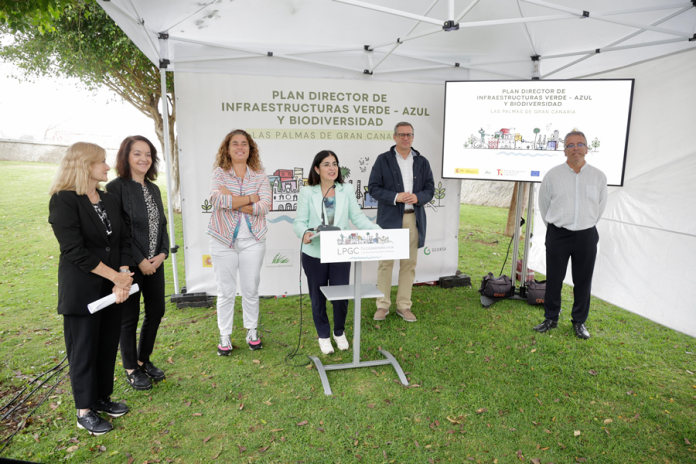 La alcaldesa de Las Palmas de Gran Canaria, Carolina Darias, ha presentado hoy el Plan Director de Infraestructuras Verde – Azul y Biodiversidad que recoge un conjunto de actuaciones con las que se pretende seguir transformando el municipio en un espacio saludable e impulsor del bienestar de la ciudadanía, sostenible y resiliente al cambio climático.