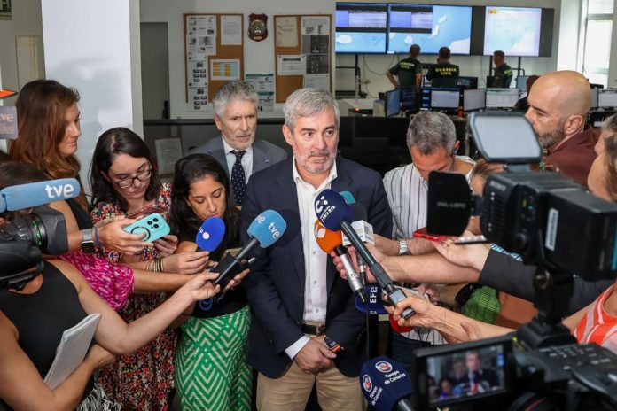 El titular del Ejecutivo canario ha considerado “evidentes las carencias de medios y personal” con que el Estado está afrontando la crisis migratoria, sobre todo en islas como El Hierro y Lanzarote donde los servicios de asistencia se han visto superados en varias ocasiones. Ante esta situación, ha ofrecido al ministro Marlaska la colaboración de la Comunidad Autónoma para “habilitar espacios”.