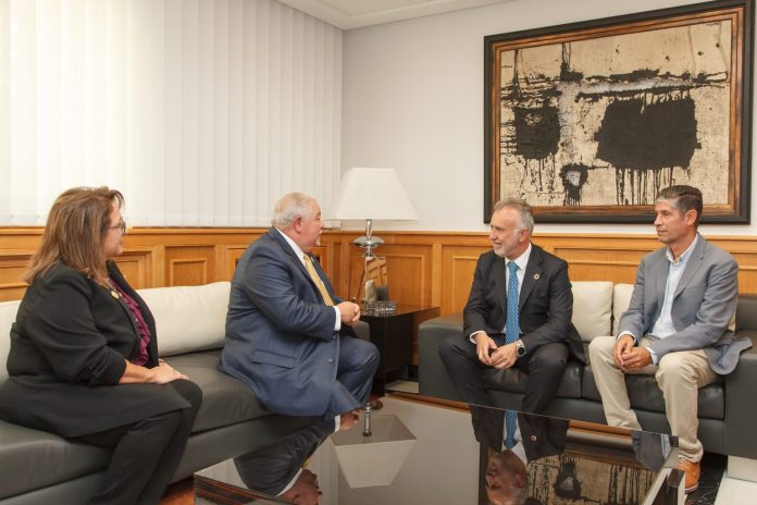 El presidente de Canarias, Ángel Víctor Torres, recibio recientemente, en la sede de Presidencia en Las Palmas de Gran Canaria, a Freddie Bustillo, presidente de la Casa Canaria en San Antonio de Texas, en Estados Unidos, y de la Asociación de Descendientes de Canarios. En el encuentro, en el que estuvo presente el director general de Emigración, Manuel Rodríguez, Bustillo trasladó a Torres los objetivos de la asociación que dirige, centrada en el fomento de los estudios e investigaciones históricas sobre las 16 familias canarias que fundaron su ciudad en el año 1731.
