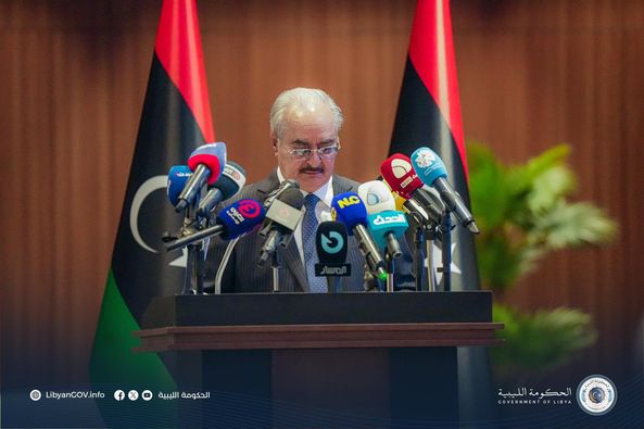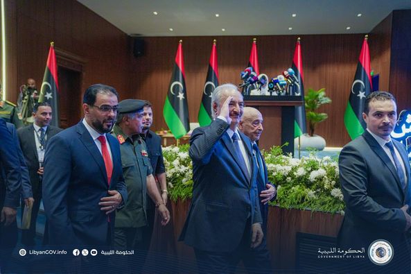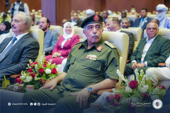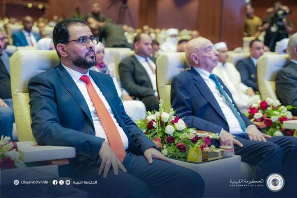 El Primer Ministro del Gobierno de Libia abrió la inauguración del Dr. Osama Hamad, hoy miércoles, acompañado por el Presidente de la Cámara de Representantes, el Consejero Aqila Saleh, el Comandante en Jefe de las Fuerzas Armadas, Mariscal Khalifa Haftar, y el Director General del Fondo de Desarrollo y Reconstrucción de Libia, Ing. Balqasem Khalifa Haftter, la primera conferencia de reconstrucción del sur celebrada en el Palacio de Fazan en la ciudad de Sabha bajo el lema de (Margen a la Construcción), en presencia del segundo adjunto del presidente La Cámara de Representantes, el Sr. Misbah Douma, Jefe del Estado Mayor General, el equipo Aul Abdul Razzaq Al-Nazouri, el Jefe de Estado Mayor de las Unidades de Seguridad, el equipo Khaled Haftar, ministros, representantes de ministerios del gobierno, alcaldes de los municipios del Sur, varios dirigentes militares y de seguridad y un gran número de componentes cultural, social y político del Sur.
