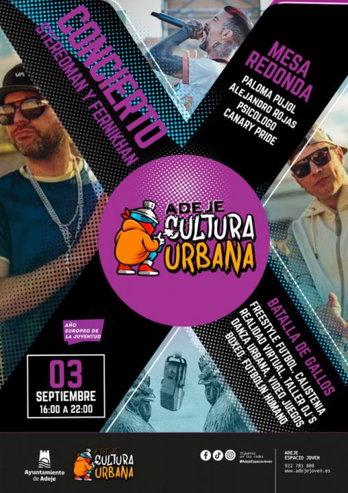 Durante la tarde y noche del próximo sábado 3 de septiembre, se llevará a cabo, en el polideportivo Tierra Lavada (Los Olivos), el evento Adeje Cultura Urbana 2022, que supondrá el cierre de actividades de verano de la concejalía de Juventud, cuya responsabilidad es de Carmen Lucía Rodriguez del Toro. El evento estará abierto para cualquier persona que quiera participar.