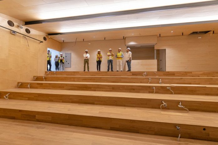 Este nuevo espacio cultural incluye, además del teatro principal con un aforo para 500 personas, una sala complementaria de 110 personas para usos diversos, ensayos, conferencias, etc.