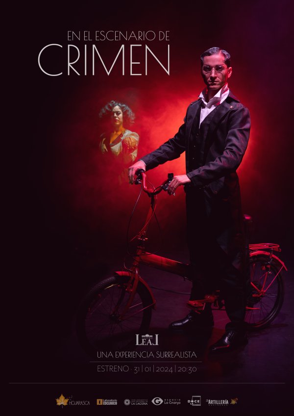 «En el escenario de ‘Crimen’: una experiencia surrealista» es una pieza escénica que surge de un trabajo de investigación de las vanguardias en Canarias y en Europa. Desde una perspectiva contemporánea, cruda y experimental, nos sumerge en los procesos creativos, en lo onírico, en lo transgresor, en lo orgánico, en nuestro imaginario irracional e inconsciente colectivo, en ese pozo sin fondo que llevamos dentro.