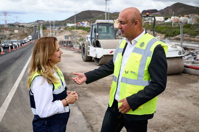 La presidenta del Cabildo de Tenerife, Rosa Dávila, acompañada del alcalde de Granadilla, José Domingo Regalado, y de las consejeras Eulalia García y Blanca Pérez, visitó esta semana las obras en ejecución. La intervención en la rotonda incluye la construcción de tres nuevos carriles: un acceso directo desde la TF-642 a la TF-64 hacia El Médano, otro desde la avenida Santa Cruz hacia el sur para facilitar el acceso a la autopista sin pasar por la glorieta, y un tercer carril de entrada desde Santa Cruz. Esta actuación, con un coste de 1,5 millones de euros, permitirá descongestionar el tráfico y reducir hasta en un 30% los tiempos de desplazamiento en una vía que registra más de 12.000 vehículos diarios.