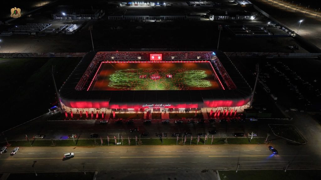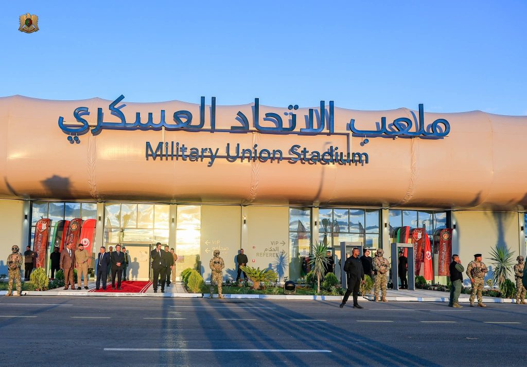 Como parte de la inauguración, se disputó un partido amistoso entre el equipo de la Federación Militar de Atletismo y el club tunecino Al-Tarji, que contribuyó al ambiente celebratorio. Las tribunas colmadas y el despliegue organizado reforzaron la imagen de un acto pensado no solo como apertura deportiva, sino como una exhibición de unidad y fortaleza en un contexto nacional aún marcado por la fragmentación política.