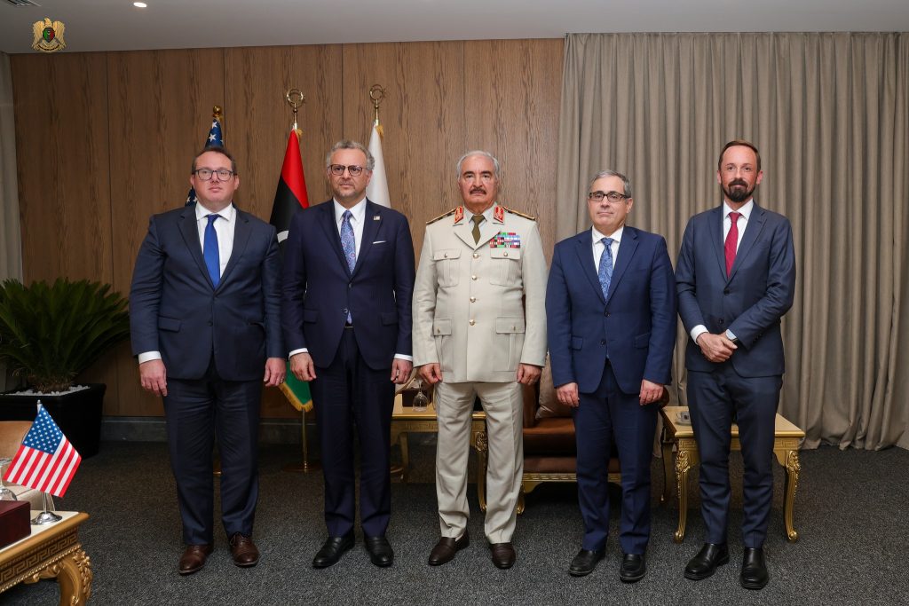 El mariscal de campo Khalifa Haftar, líder del Ejército Nacional Libio (LNA), mantuvo recientemente un encuentro oficial en Bengasi con Massad Boulos, asesor de Donald Trump para Asuntos Africanos, en el marco de la visita de una delegación estadounidense que se encuentra en Libia. La reunión tuvo lugar en el cuartel general del LNA y contó con la presencia de altos representantes de ambos lados.