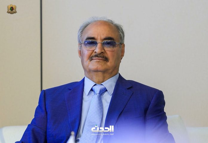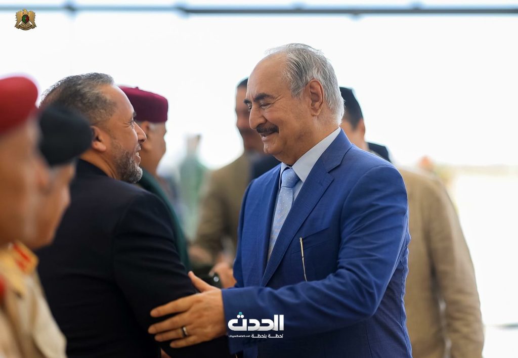 Marshal Khalifa Haftar, General Commander of the Libyan Armed Forces, hosted a high-level meeting with sheikhs, elders, and dignitaries from the Fazan tribes in the military city that bears his name. The meeting was attended by key figures from the eastern-based government, including Prime Minister Osama Hamad, Chief of General Staff Khalid Haftar, and Director of the Libyan Development and Reconstruction Fund, Balqasim Haftar.