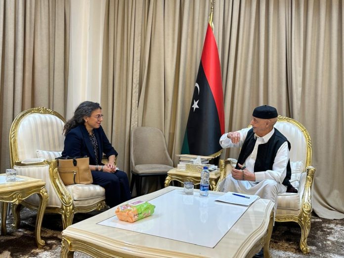 The Speaker of theHouse of Representatives, AqilaSaleh, explainedduringhis meeting in Al-Qubba in easternLibyawiththeActing Head of theUnitedNationsSupportMission in Libya, Stephanie Koury, hisvisionforthepath to resolvingthepolitical crisis in Libya.