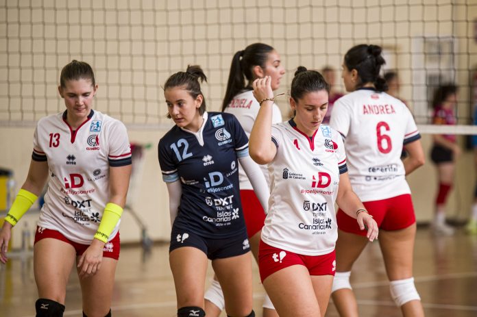 El equipo masculino comenzó su partido a las 12:00 horas en Gijón con varios errores que provocaron que los locales estuvieran casi todo el set por delante. Hasta cuatro bolas de set levantaron los tinerfeños para llevarse el primer tanto de la mañana, pasando del 24-20 al 25-27 definitivo.