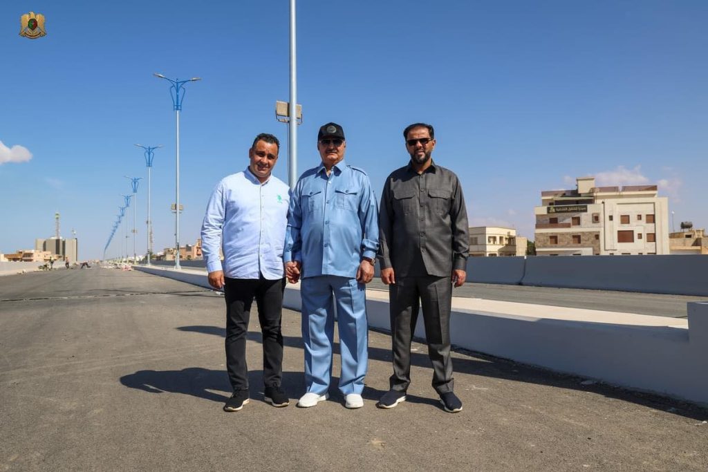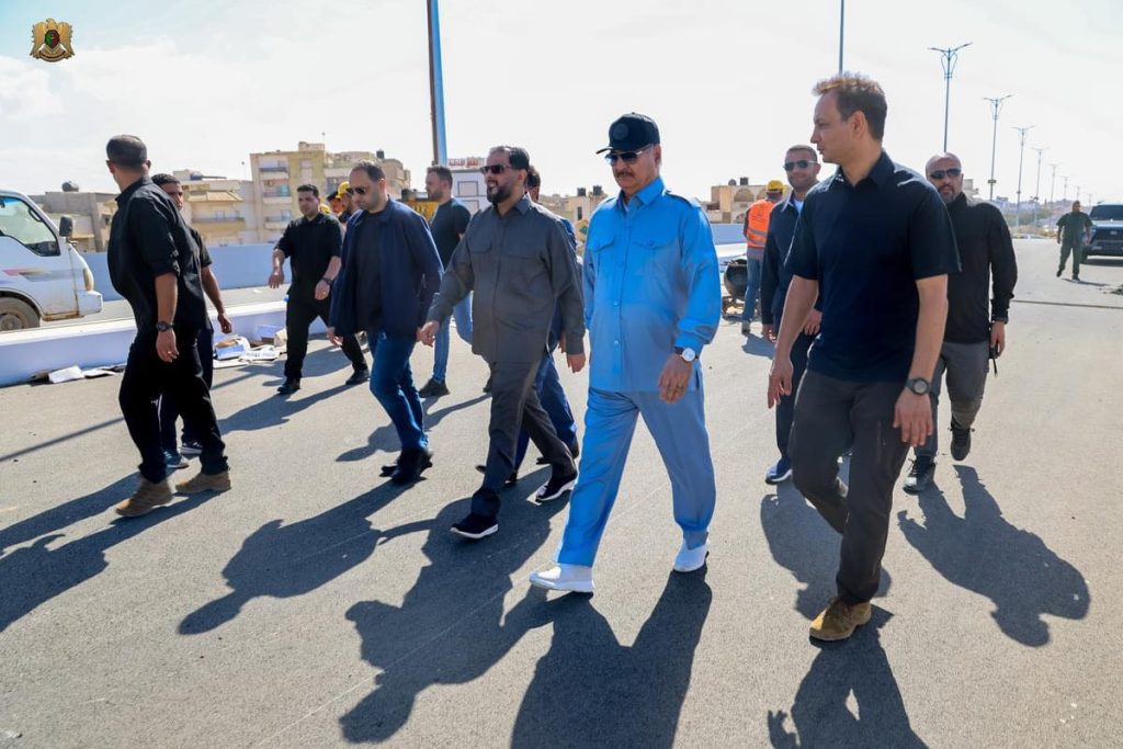 El líder militar libio reafirma su compromiso con la reconstrucción nacional, acompañado de altos funcionarios en un recorrido por obras emblemáticas de infraestructura y educación.