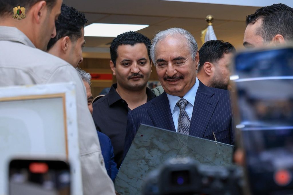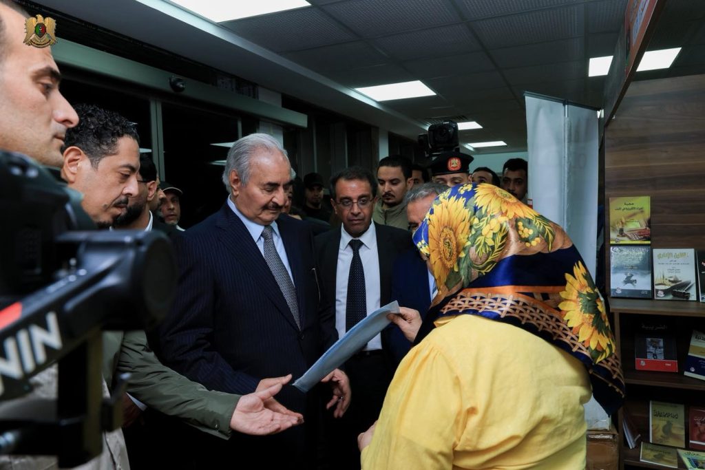 During the tour of the various exhibition stands, Haftar reviewed the work of over 100 local and international publishers from 12 different countries, highlighting the fair as a significant regional cultural gathering.