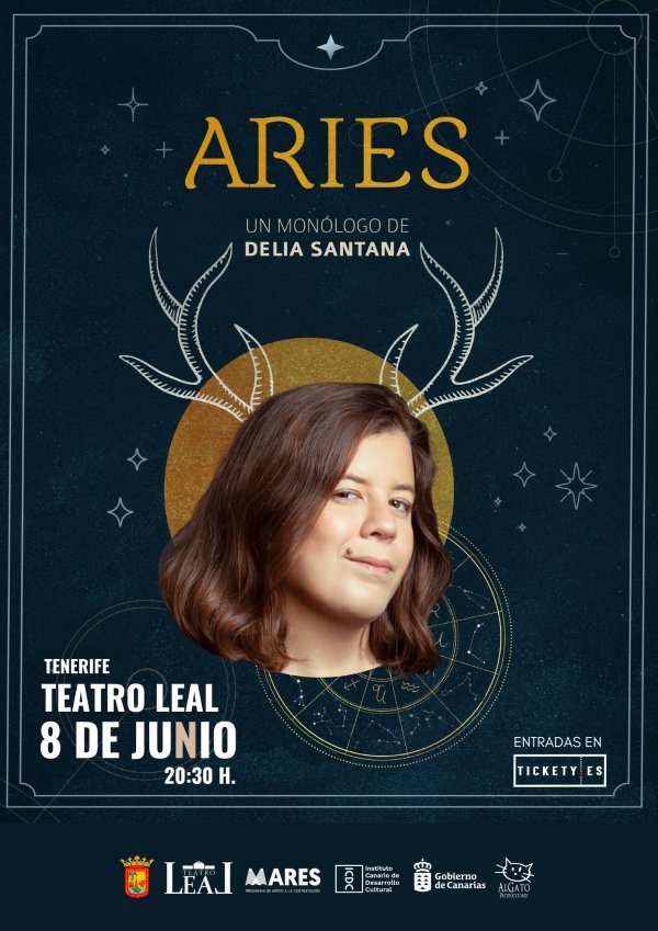 La actriz y humorista grancanaria Delia Santana llega al escenario del Teatro Leal de La , para presentar su nuevo espectáculo Aries. Este show utiliza los astros y el zodiaco como pretexto para hilar una serie de historias nuevas, impregnadas del estilo inconfundible de la artista. El monólogo, recomendado para mayores de 13 años, promete ser una mezcla perfecta de humor, improvisación y teatro, los tres pilares fundamentales que caracterizan a Santana.