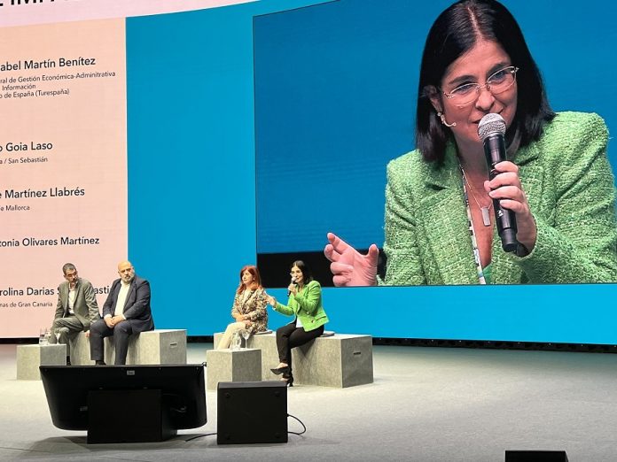 Carolina Darias ha participado junto al alcalde de Donostia/San Sebastián, Eneko Goia, el de Palma de Mallorca, Jaime Martínez, y la alcaldesa de Úbeda, Antonia Olivares en la mesa redonda ‘El impacto del turismo en las comunidades receptoras’, que ha estado moderada por la subdirectora general de Gestión Económica-Administrativa y Tecnologías de la Información del Instituto de Turismo de España (Turespaña).