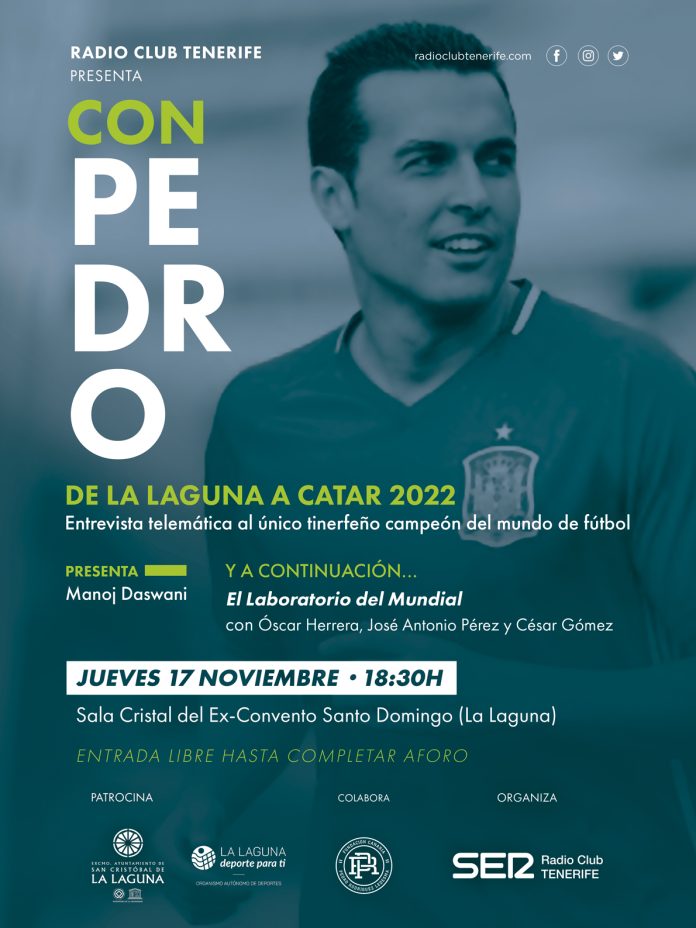 El exconvento de Santo Domingo acogio ayer jueves 17 (18:30 horas), ‘Con Pedro, de La Laguna a Catar 2022’, una entrevista telemática al único tinerfeño que se ha proclamado campeón del mundo de fútbol. Ayuntamiento y Organismo Autónomo de Deportes (OAD) colaboran con Radio Club Tenerife y la Fundación Pedro Rodríguez Ledesma en una jornada en la que se analizará pormenorizadamente el venidero Mundial. La entrada será libre hasta completar aforo.