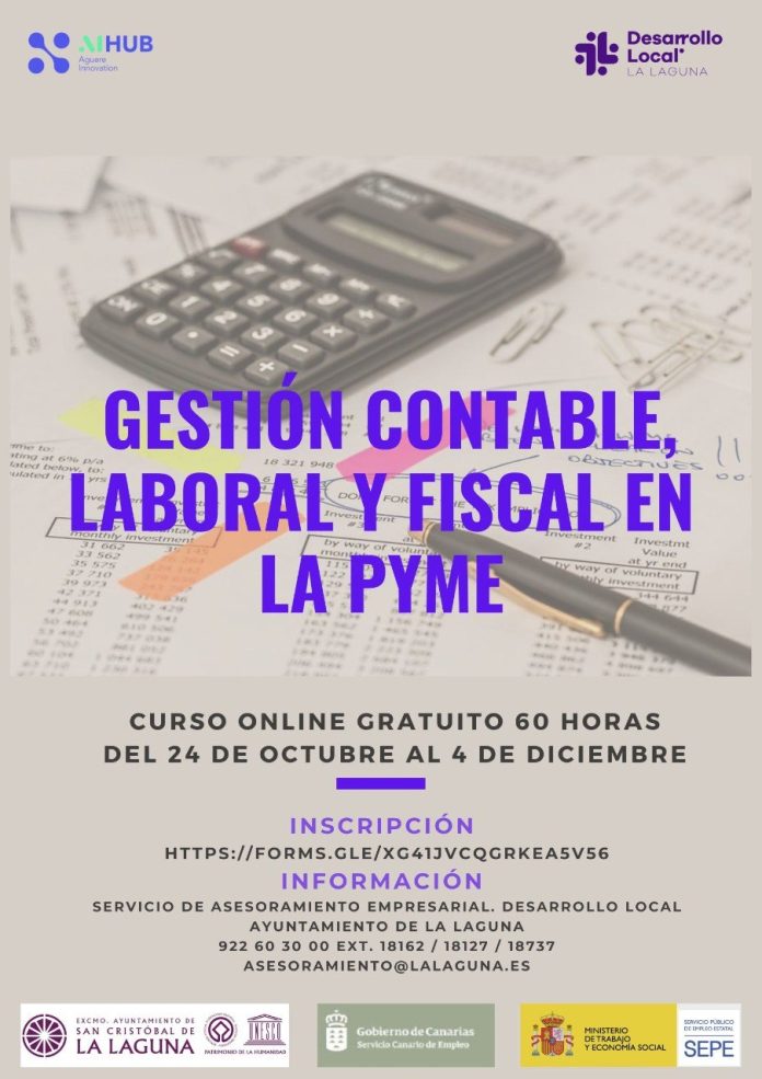 El Servicio de Asesoramiento Empresarial del Área de Comercio y Desarrollo Económico del Ayuntamiento de La Laguna organiza un nuevo curso diseñado para que emprendedores y pequeñas y medianas empresas del municipio mejoren sus conocimientos en materia fiscal, laboral y contable, una formación en formato online, que cuenta con la colaboración del Servicio Canario de Empleo y del SEPE, y que les proporcionará todas las novedades y consejos de gestión necesarios para que puedan mejorar la viabilidad de su modelo de negocio.