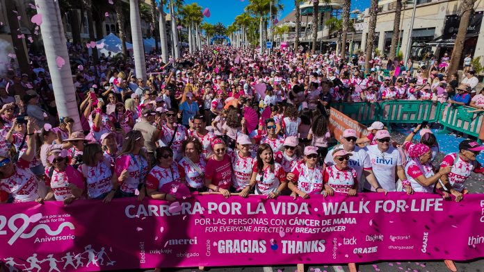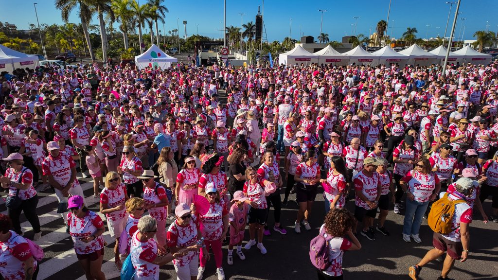 La vigésima edición de la Carrera por la Vida volvió a convertir el sur de Tenerife en un estallido de solidaridad. Lo que comenzó como una pequeña iniciativa hace dos décadas se ha consolidado como uno de los eventos sociales más multitudinarios de Canarias, con más de 7.000 participantes teñidos de rosa en apoyo a mujeres y hombres afectados por el cáncer de mama.