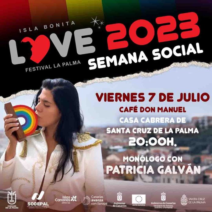 El Cabildo de La Palma, a través de la empresa pública Sodepal y el proyecto Isla Bonita Love Festival, pone el punto final a su Semana Social con un monólogo protagonizado por Patricia Galván que tendrá lugar mañana, 7 de julio, a las 20.00 horas, en el Café de Don Manuel, ubicado en la Casa Cabrera de Santa Cruz de La Palma.