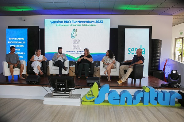 Sensitur PRO Fuerteventura reanudó su jornada, tras el coffe break, con un interesante y necesario debate. Y es que, la gestión de residuos, la medición de la huella de carbono en cada fase de la actividad turística y, por otro lado, la comunicación y promoción eficaz de un destino turístico sostenible, fueron los puntos que desarrollaron y defendieron los empresarios y expertos integrantes de esta mesa. Todo ello, con el Hotel Coral Cotillo Beach como marco del evento.