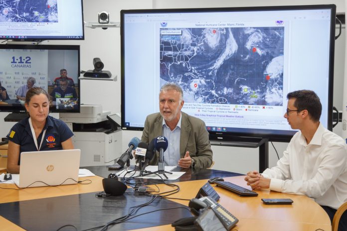 Ángel Víctor Torres presidió esta tarde a la reunión técnica de coordinación para el seguimiento del Fenómeno Meteorológico Adverso (FMA), ante la declaración de Alerta Máxima por la proximidad de la tormenta tropical Hermine a Canarias. La reunión contó con la asistencia del consejero de Administraciones Públicas, Justicia y Seguridad, Julio Pérez, junto a los presidentes de los Cabildos y representantes del Centro Nacional de Seguridad y Emergencias (CENEM), Delegación del Gobierno, Federación Canaria de Municipios (FECAM), AEMET, fuerzas de seguridad y servicios de emergencias.