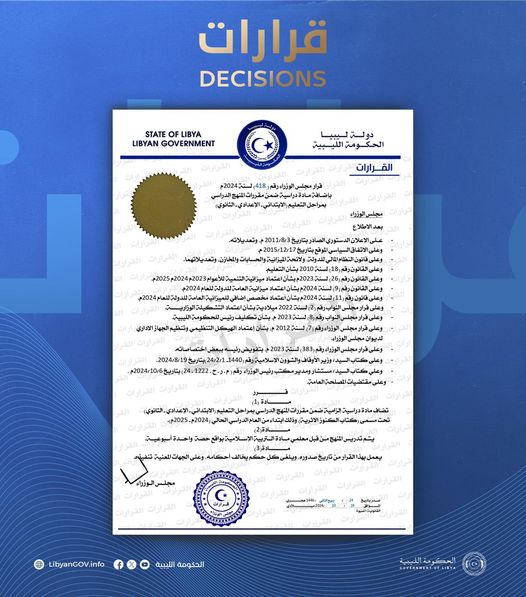 Este cambio académico subraya el compromiso del gobierno libio de revitalizar el orgullo patrimonial y de fortalecer el entendimiento de la rica herencia cultural del país entre sus jóvenes, quienes serán los futuros guardianes de su historia y cultura.