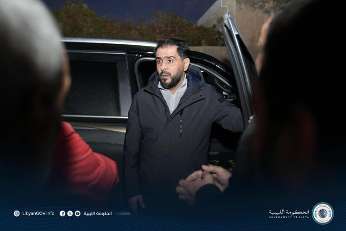 Libyan Prime Minister Dr. Osama Hamad visited the municipality of Slouk today as part of an extensive tour of regions affected by heavy rainfall that has battered the country in recent days. Traveling from the city of Agdabia, Dr. Hamad arrived in the area to assess firsthand the extent of the damage and oversee emergency operations.