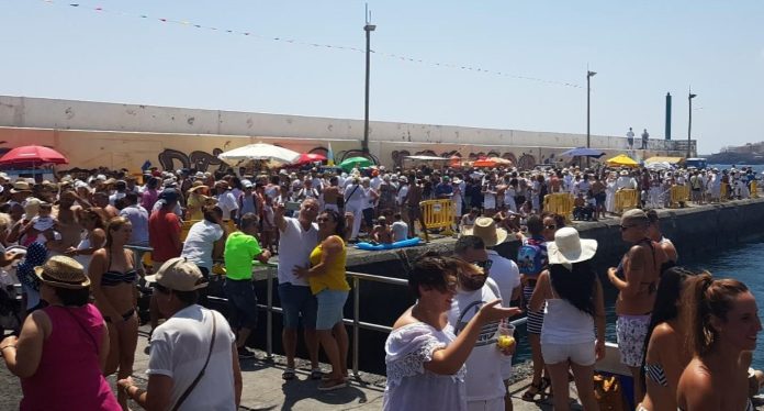 Tras el rezo en honor al patrón, las carrozas agrupaciones folclóricas y rondallas participantes se dirigirán por la avenida Agua Dulce hasta la calle Estrella de Mar, y desde ahí al muelle de Los Abrigos. A su término se celebrará una gran verbena hasta la medianoche a cargo del grupo Los Concejales.