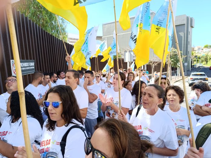 Bajo el lema ‘El Servicio de Cocina hay que mejorar para a los Pacientes poder alimentar’ y organizados por Intersindical Canaria, los trabajadores recorrieron los espacios del recinto hospitalario hasta el pabellón de gobierno.