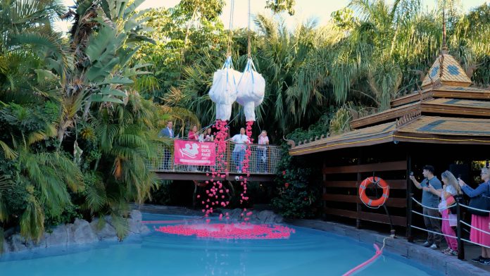 mama. En el Río lento del Siam Park, más de cuatro mil pequeños patitos