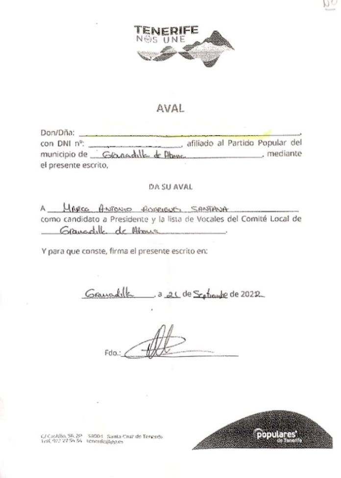 Tomen nota. Avales falsificados. Hemos tenido acceso a los mismos. Está claro que se hizo porque Marco Antonio no tenía, al parecer, los apoyos suficientes para acceder al poder local y hacerse con él y luego proclamarse candidato. No nos lo tenía, porque si no no se explica que cayera en eso y se pusiera a estampar firmas falsas, hurtando la libertad de los militantes, que con esas firmas que no eran suyas, se veían apoyando a alguien que no querían.