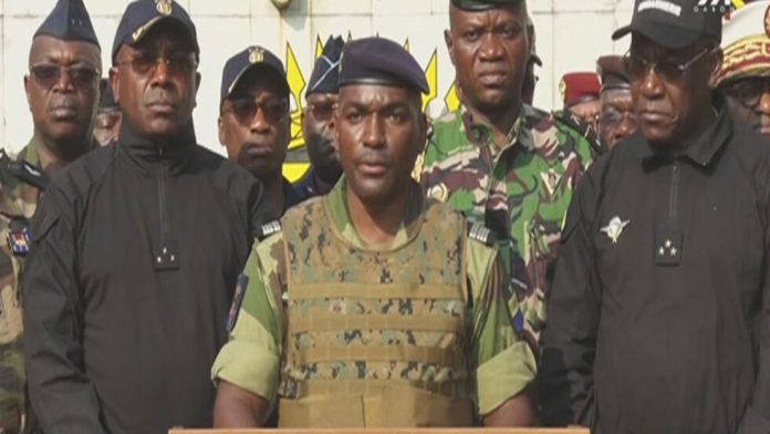En su comunicado, los militares anunciaron la anulación de las elecciones del sábado y la disolución de «todas las instituciones» de este país en el centro-oeste de África.