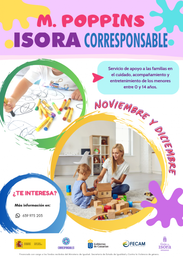 El Área de Igualdad del Ayuntamiento de Guía de Isora pone en marcha el proyecto M. Poppins “Isora Corresponsable”. Se trata de un servicio de apoyo a las familias en el cuidado y acompañamiento de los menores entre 0 y 14 años de edad.