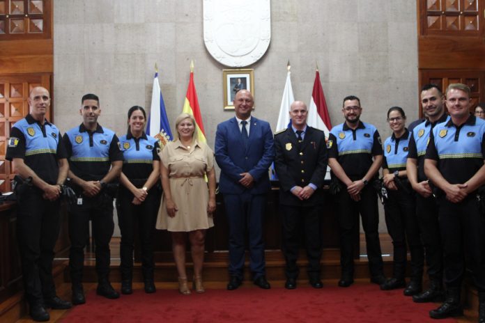 El salón de plenos del Ayuntamiento acogió recientemente, la toma de posesión de siete nuevos agentes que se incorporan a la plantilla de Cuerpo de la Policía Local de Granadilla de Abona, tras el proceso formativo a través de la Dirección General de Seguridad. El acto estuvo presidido por el alcalde, José Domingo Regalado González; la concejala de Seguridad, María Candelaria Rodríguez, y el jefe de la Policía Local, Ricardo Rivero.