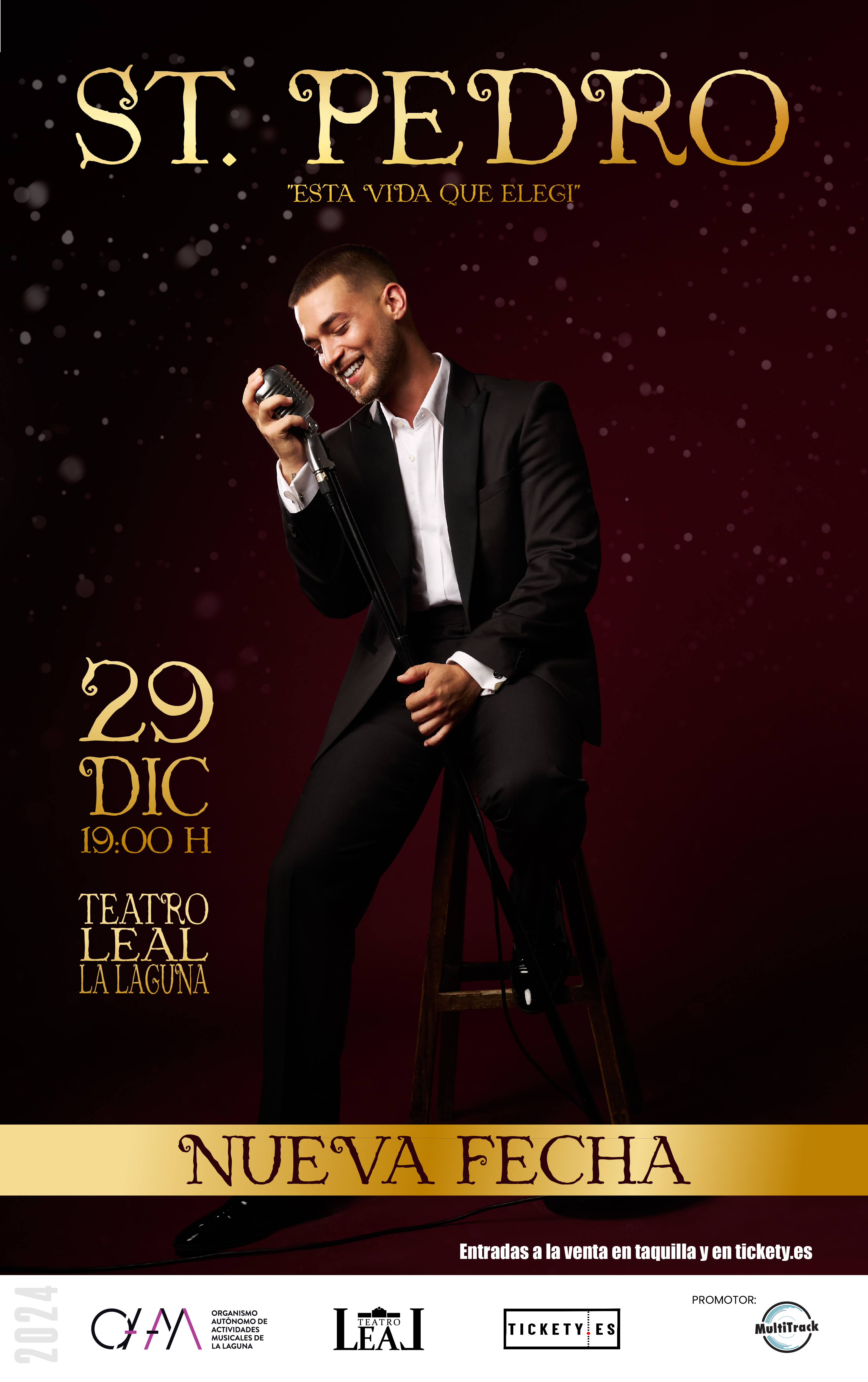 St Pedro culmina el año de lanzamiento de su álbum «Esta Vida Que Elegí» con un concierto especial en el incomparable Teatro Leal de La Laguna. Acompañado de su banda, el artista ofrecerá un recorrido por los temas de su disco, cargados de ritmos latinos y una pasión arrolladora que ha definido su sonido.