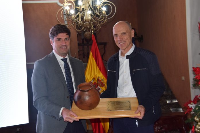El alcalde Emilio Navarro entregó la Talla de Oro al profesor Serafín Pardo, recientemente jubilado, por su labor docente y trayectoria profesional en el municipio durante 34 años.